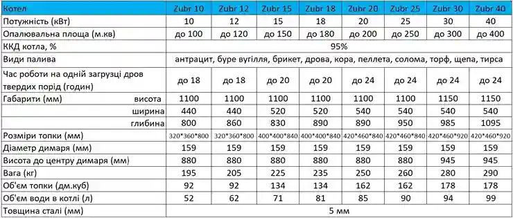 Котли шахтного типу, вироблених на цій фірмі, виконують за технологією креслень Холмова та мають серійне виробництво. Тому котел Zubr має унікальний серійний номер.